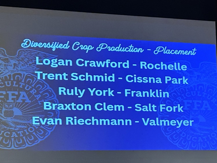 Congratulations to Logan Crawford for earning a top 5 placing in the area of Diversified Crop Production Placement at the Illinois Association FFA State Awards Day today!!